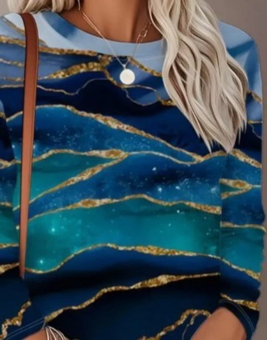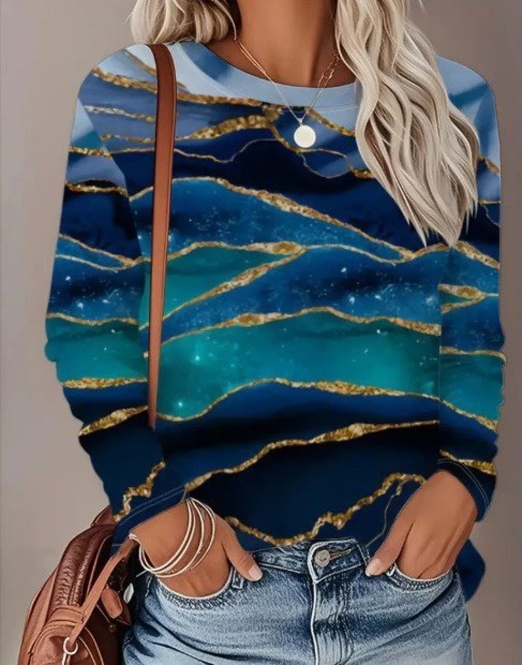 Kadın Uzun Kollu Bisiklet Yaka Desenli Modal Bluz