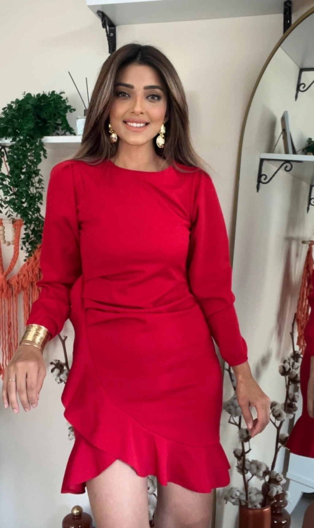 Kadın Uzun Kollu Bisiklet Yaka önden Volanlı Ithal Krep Elbise