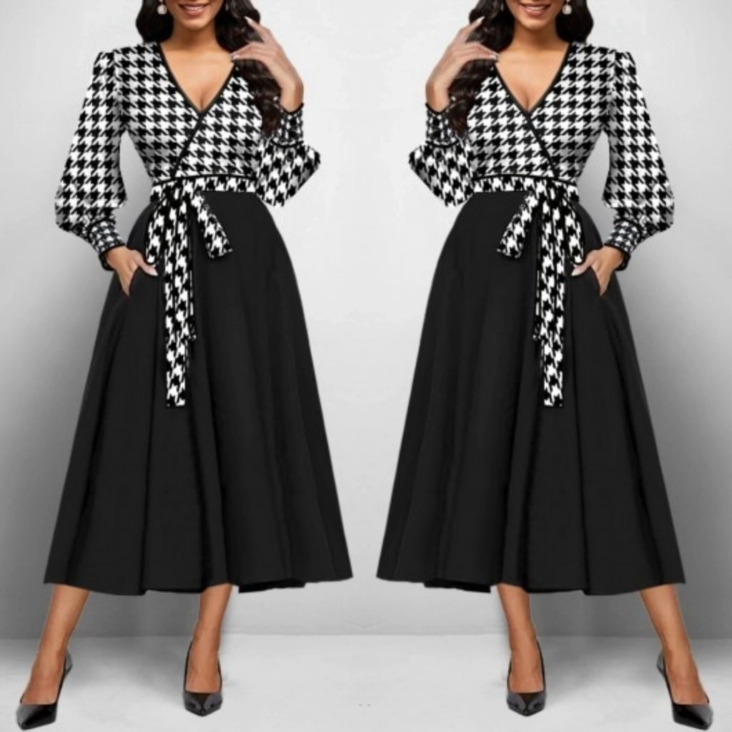 Kadın Uzun Kollu Kruvaze Yaka Dalgıç Krep Midi Boy Elbise