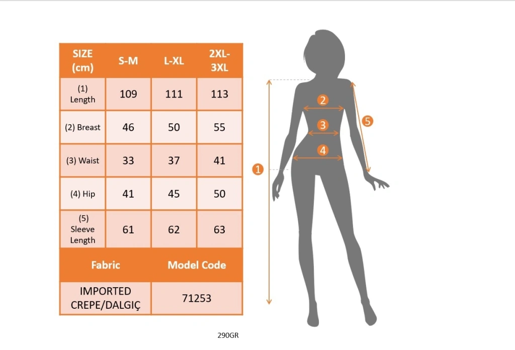 Modelin Ölçüleri: Boy:165, Kg:55, Göğüs:90, Bel:72, Kalça: 100