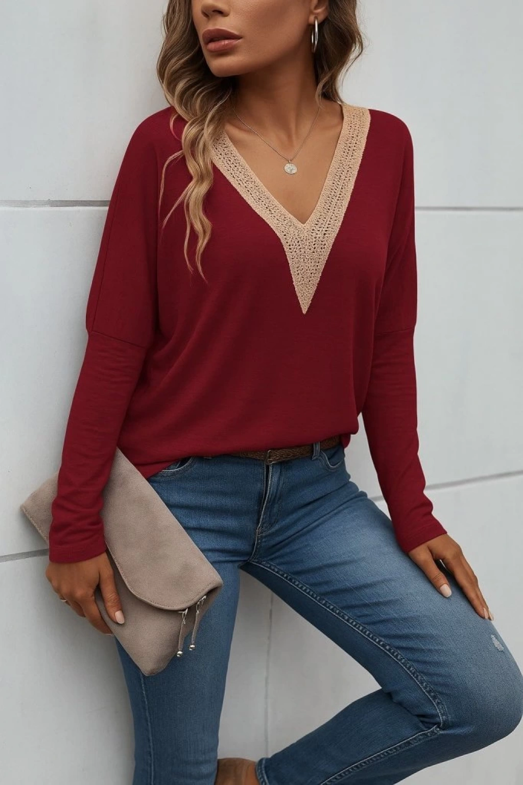 Kadın Uzun Kollu V Yakalı Yarasa Kollu Viskon Bluz