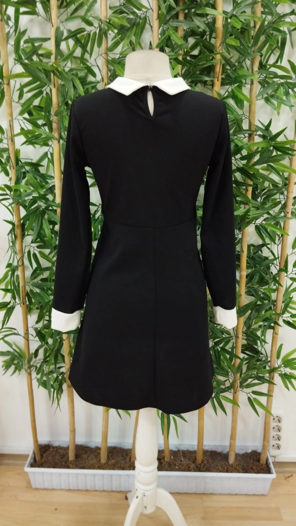 Kadın Uzun Kollu Yakalı A Kesim Kısa Ithal Krep Elbise