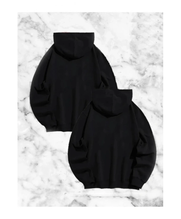 Erkek Ovarsize Kapüşonlu Swetshirt Kanguru Çepli Cıtcıtlı 3 Iplik Şardonlu Hoodie - Siyah